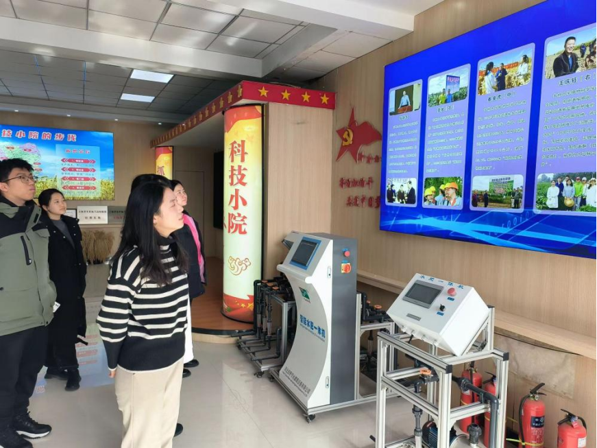在工作人员带领下,成员依次参观了新洋丰科技展厅中的玉米、大米、小米、绿豆粉条等特色农产品样品,切实感受了科技小院对于产品质量的提升。大家纷纷表示,好的产品需要推广出去,数商兴弄,青年助农,让百姓收获到切实的利益。