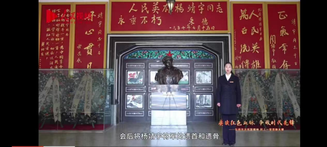 跟随主讲人的身影,进入杨靖宇将军纪念馆,这节网络思政大课让我受益匪浅。在长期的抗战中,东北抗联孤悬敌后、武器简陋,缺衣少食、挨冻受饿,面对挑战人类极限的最恶劣条件和最残酷斗争环境,在深山野林、冰天雪地里与数十万敌人进行殊死搏斗,在生与死、血与火的磨砺中熔铸成伟大的东北抗联精神。我们生在红旗下,长在春风里,正是因为有抗联战士们的英勇精神,才铸就了当今河清海晏的盛世。感谢所有英烈前辈们,作为新时代青年,我们也必不负嘱托与期望,乘风破浪,勇往直前!