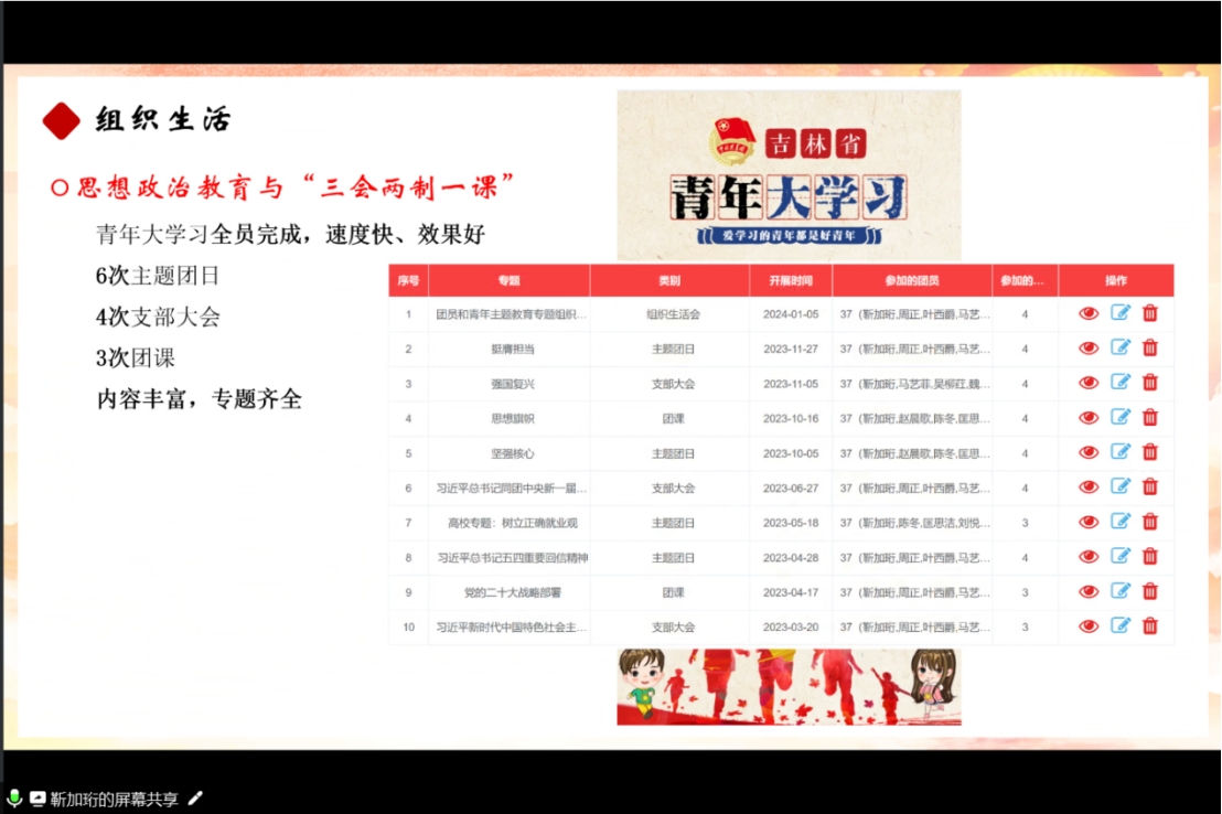 团委负责人宋绍伟老师作总结评议。宋绍伟老师对以上汇报团支部在2023年度的扎实建设与工作成果表示了肯定与认可,并指出了各位团支部书记在汇报答辩中所存在的一些不足。