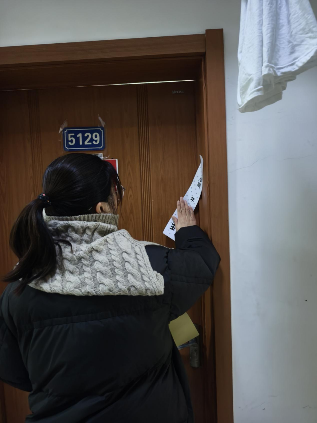 在已离校同学的寝室中,老师们对电源、水源关闭情况进行了逐个检查,对学生电脑、充电宝、台灯等电器电源以及门窗关闭情况进行了重点检查,对有可能出现安全隐患的消防死角进行逐一排查后粘贴封条进行封寝。走访中对于寝室硬件设施的破损情况,老师们及时上报公寓宿管人员沟通进行维修。