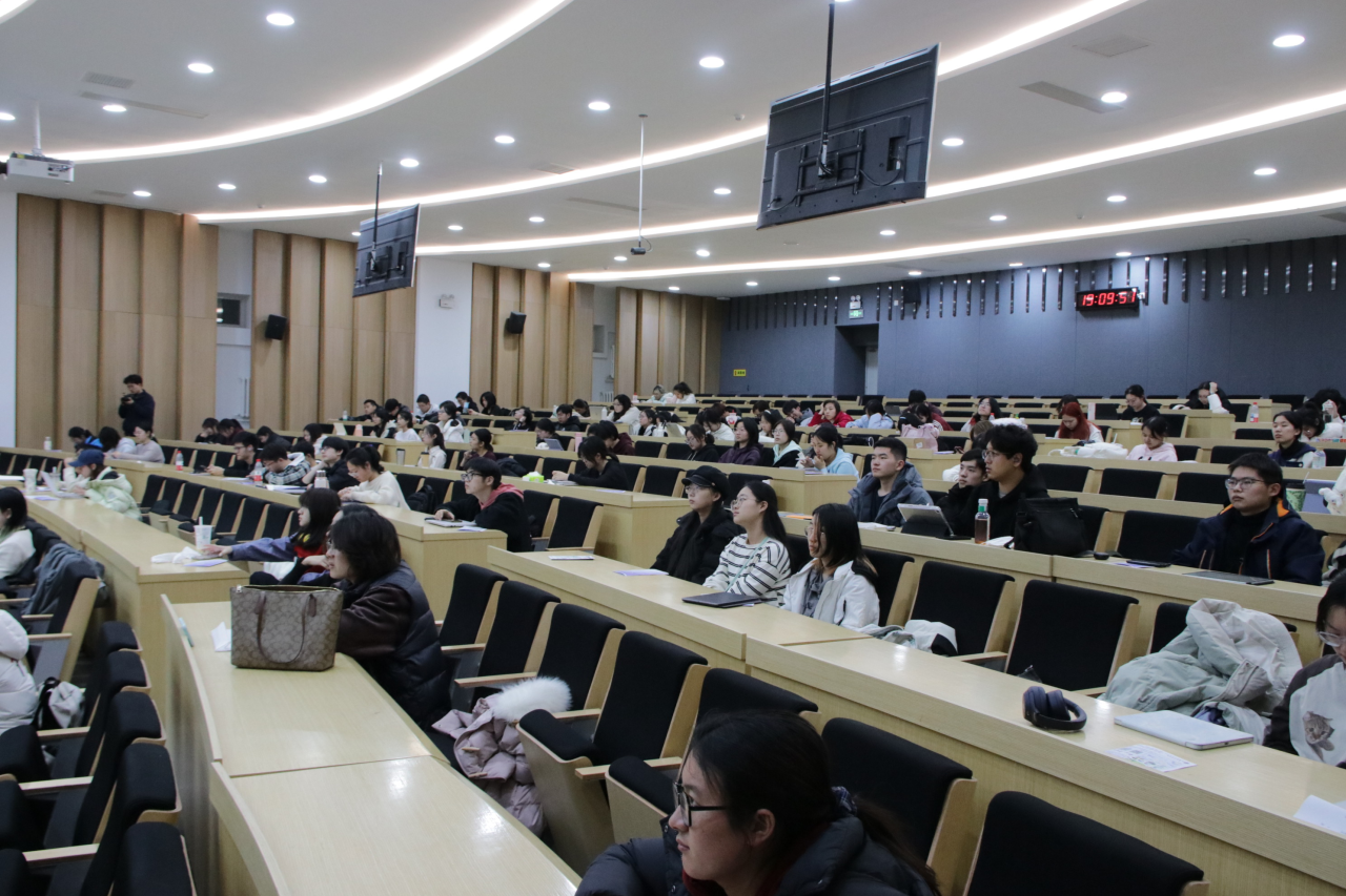 于逸夫楼第五阶梯教室组织召开春季学期2024级本科生年级大会,本次年级大会由学院本科生辅导员张鑫鹏老师主持。