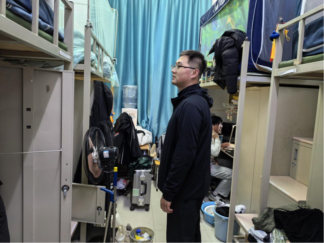 假期将至,为切实加强学院本科生动态管理,提升学生安全意识,强化学生宿舍教育管理,培养学生良好的学习态度和生活习惯,4月3日,学院党委副书记兼副院长朱大卫老师带领学生工作办公室各位老师共同前往中心校区北苑二公寓和南苑三、四公寓,对91av