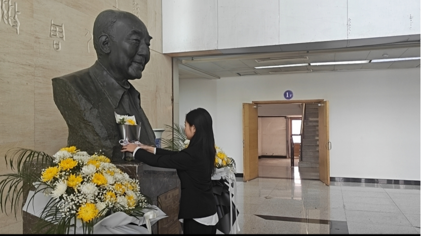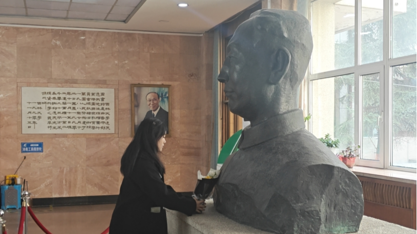 一躬一献,皆见诚心。学子们轻抚铜像基座,以鲜花铺就精神之路。镜头定格了青年学子与先贤雕像的肃穆同框,历史与当下在此刻交织,先贤的哲思穿透时光,浸润学子心田。