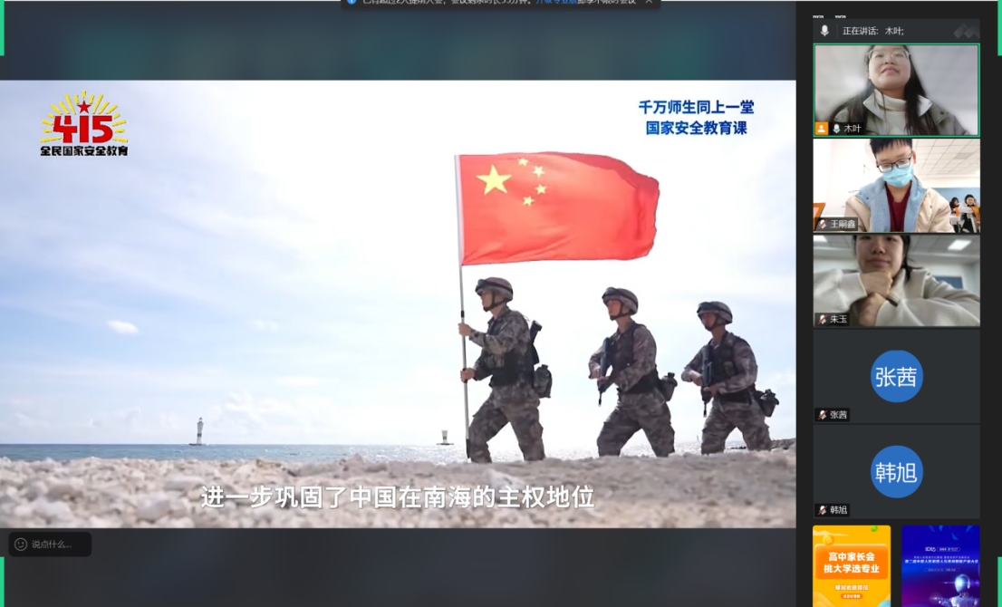 首先,学院各团支部通过线上平台集体观看了《千万师生同上一堂国家安全教育课》主题公开课,系统学习了总体国家安全观的核心要义和十年来全民国家安全教育成果,深刻认识到我国国家安全形势面临的机遇和挑战,进一步增强忧患意识、树立底线思维。