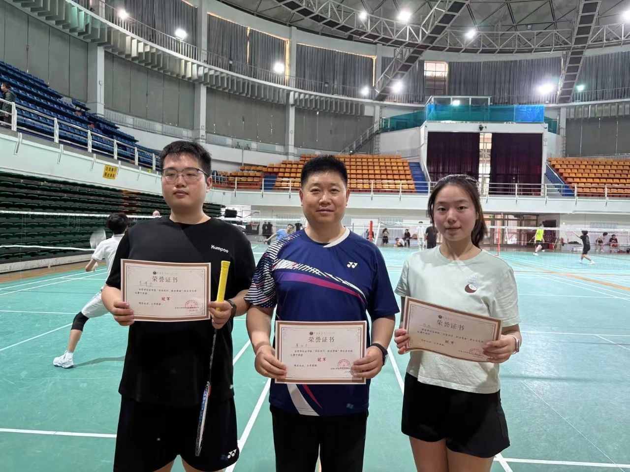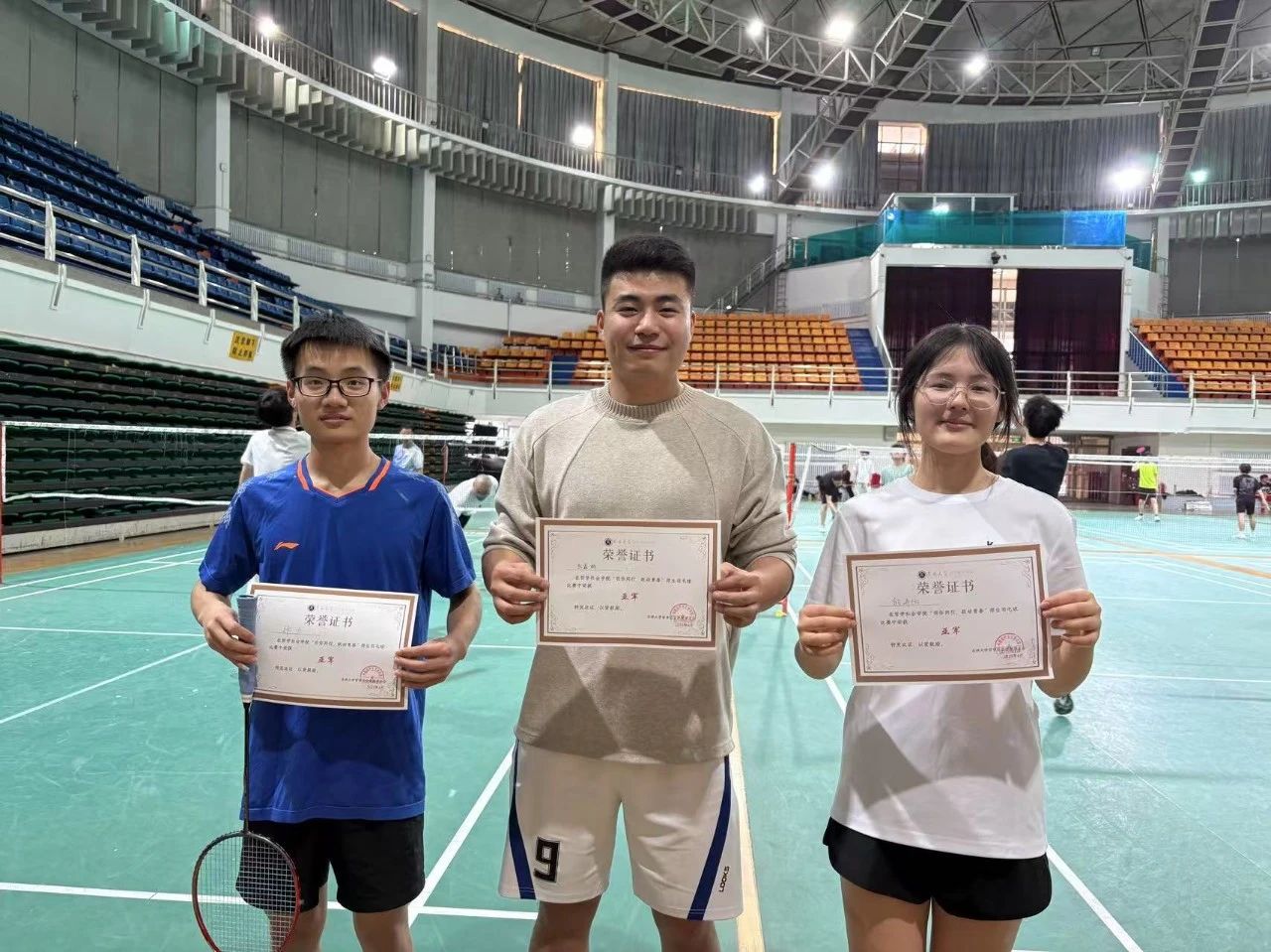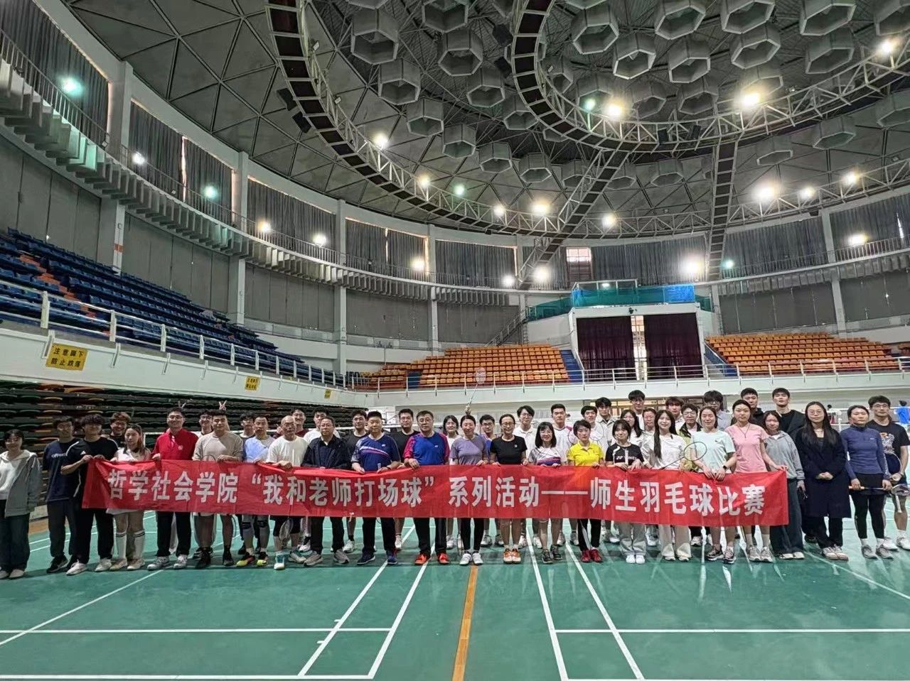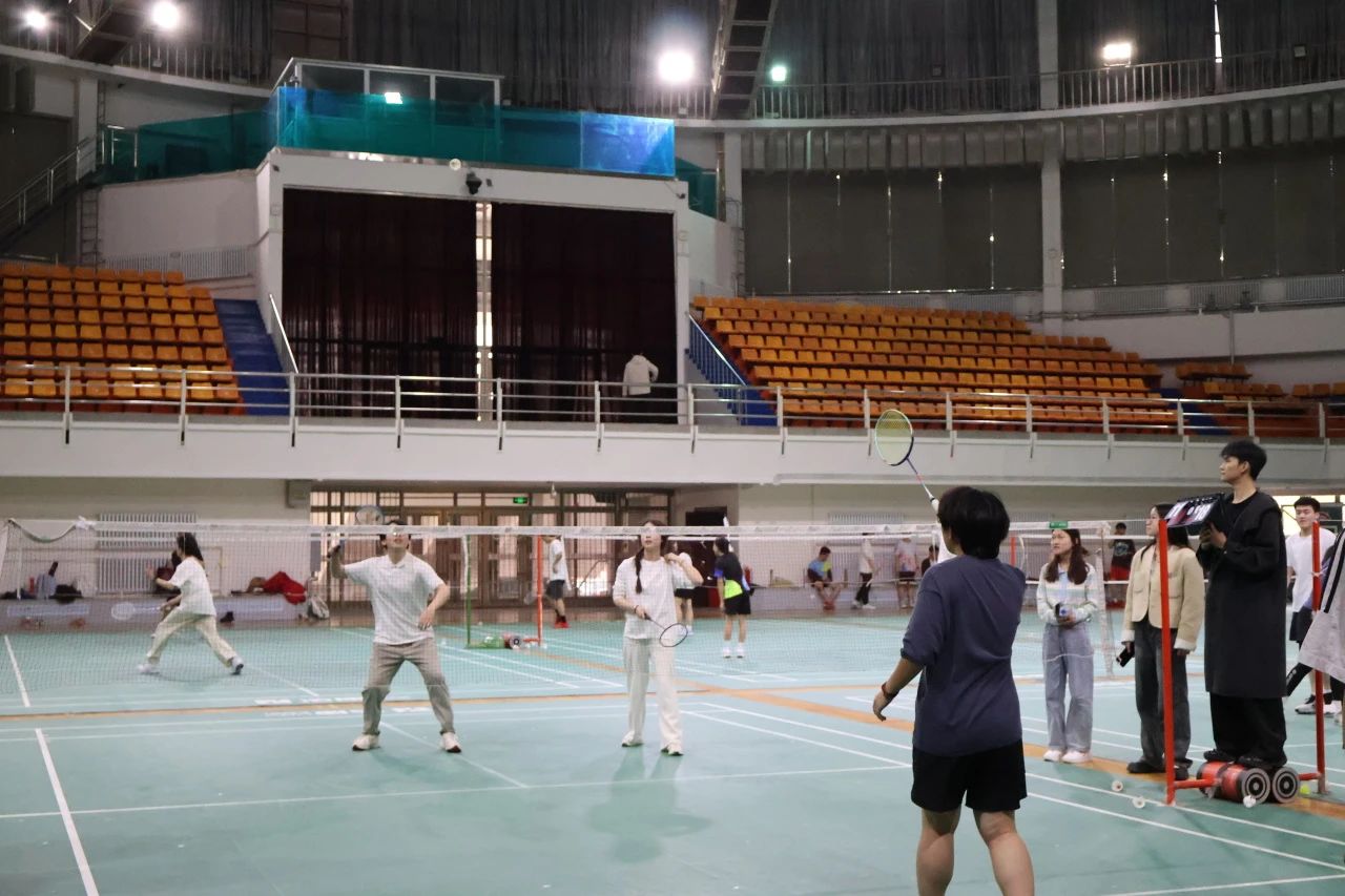 师生课余生活,促进师生情感交流,营造健康向上、团结互助的学院氛围,4月19日,在前卫体育馆,一场别开生面的羽毛球赛火热开打。平时在讲台上传道授业的老师们在球场上传递着“文明精神,强健体魄”的精神,同学们则以矫健的身姿展现新时代青年风采。
