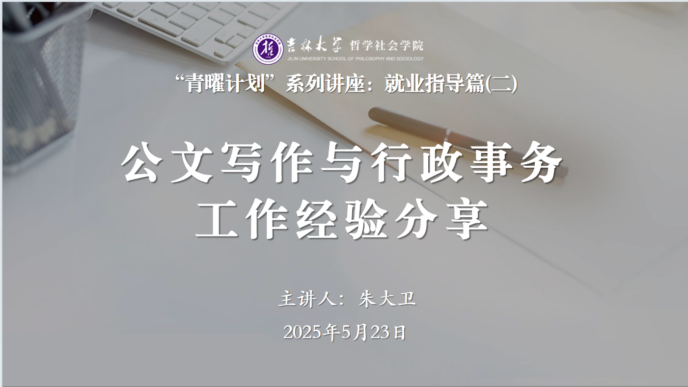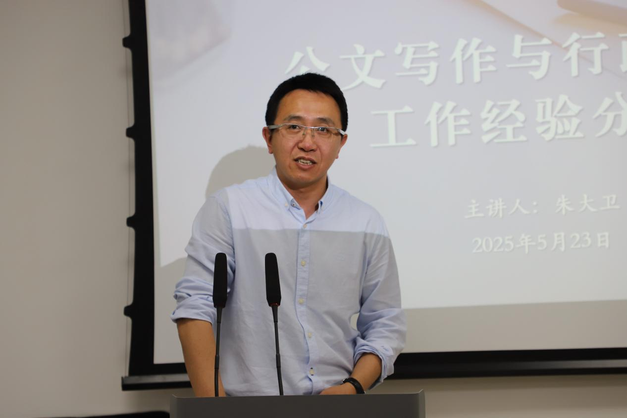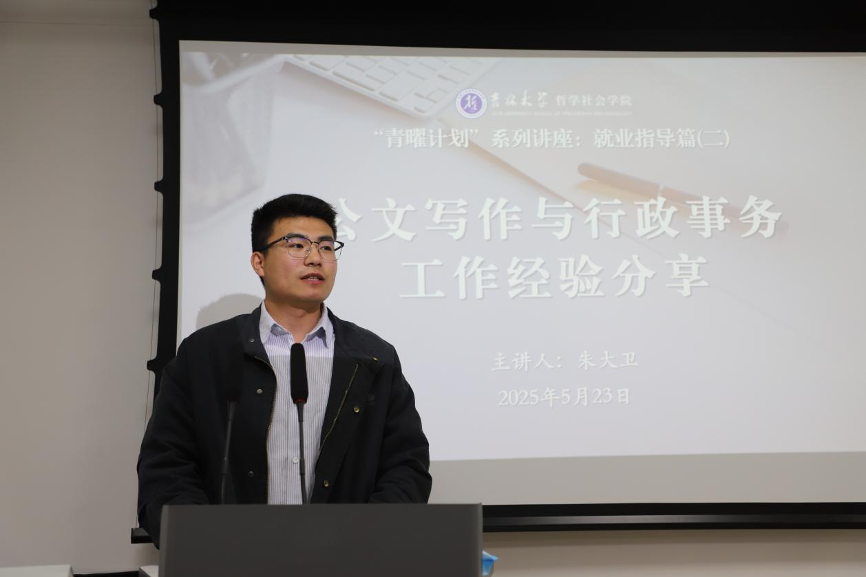 党委副书记兼副院长朱大卫老师围绕“公文写作与行政事务工作经验分享”主题,在东荣大厦915会议室为同学们做“青曜计划”系列讲座第二讲——就业指导篇,本次讲座由学院本科生辅导员张鑫鹏老师主持。