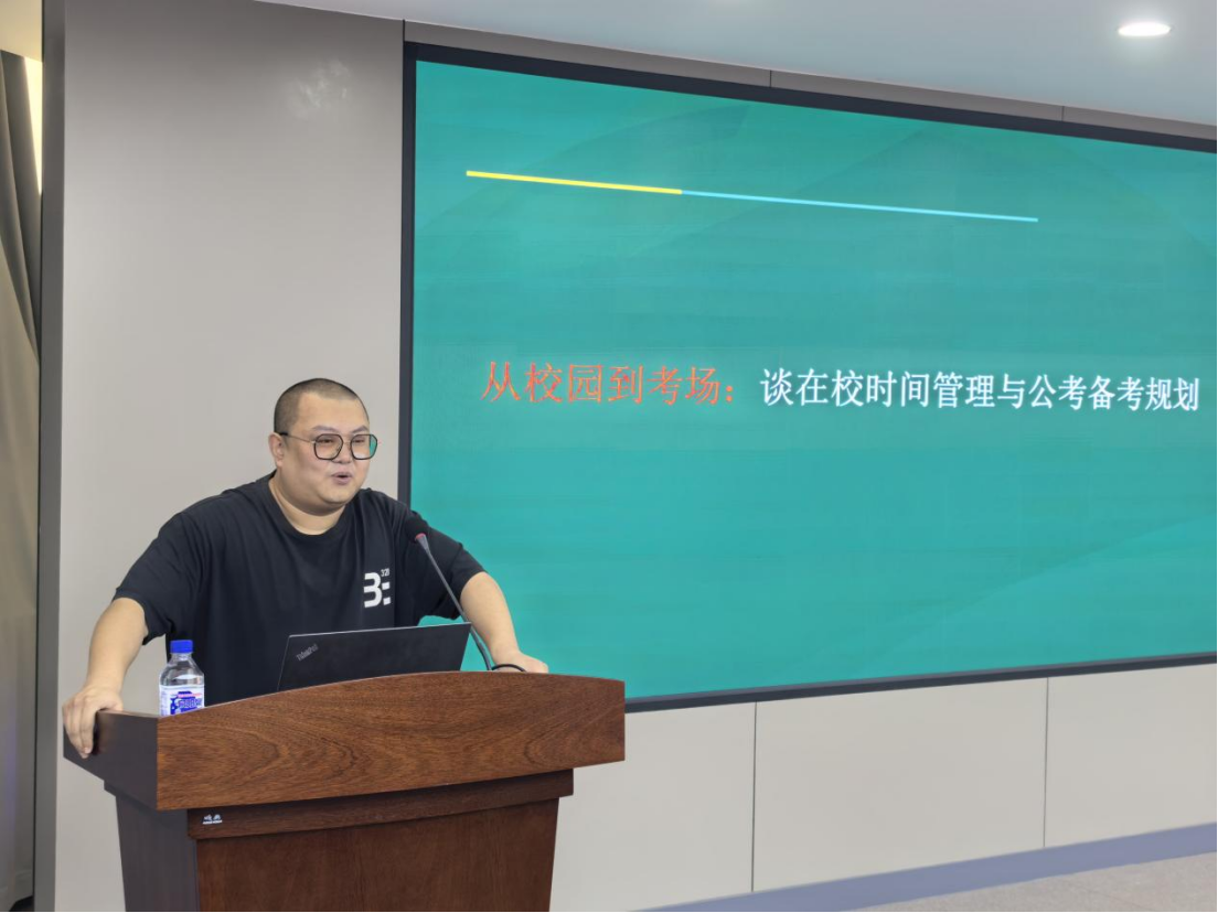 随后,薛达放老师就公考的考试科目、招录流程、岗位选择策略等作出系统梳理,提出契合学科背景的备考建议与职业发展路径。与此同时,对同学们提出的备考问题进行答疑解惑。