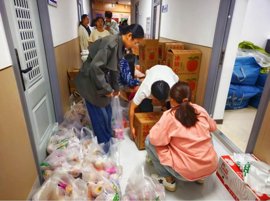 为确保活动顺利开展,学院提前部署、精心筹备。学院学生会生管部的同学们分工协作,在大学城学生服务中心将月饼和水果按寝室分装成一份份暖心礼包。礼包中的月饼包装精美,印有“青春向北,吉人天下”字样,水果清香四溢,整体寓意团圆与温暖,传递出学院深切的节日问候。新同学们有序领取并表示感谢。