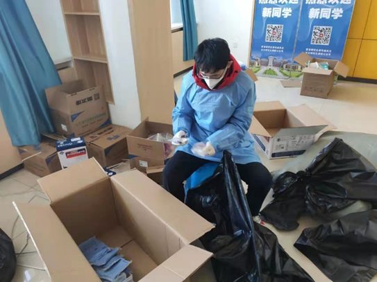 南区“快递员”团委书记于士博老师。在学校封校后,于老师第一时间打包行李入住学校,立刻投入校内防疫工作,负责整个南区的物资配送工作。于老师每天都要工作十几个小时,保障各类防疫物资及时送达。他穿着厚重的防护服,抱着防疫物资在冰天雪地里艰难行走,始终奔波在为学生服务的第一线,积极地为同学们解决实际困难。于老师在为同学们服务的同时,也不忘关心大家的学习和日常生活,从防疫到生活,他事无巨细。于老师用自己的认真负责和无私奉献温暖了所有学生,也践行着青年人的责任与担当,为同学们树立了榜样!我们都始终相信,“吉林必有吉临时,长春必复往常春”!