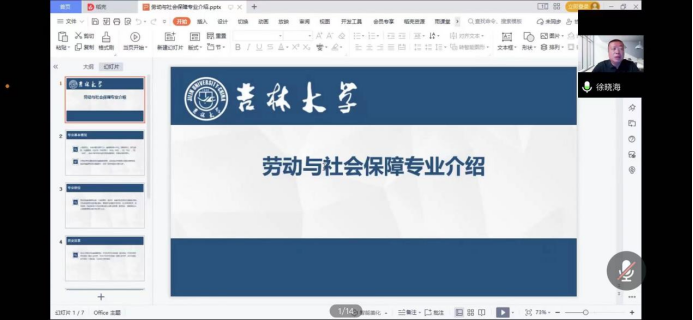 劳动与社会保障系副主任徐晓海老师就劳动与社会保障专业的基本情况进行介绍,提到了社会保障的多学科交叉融合特性,从充分的国际交流机会、坚实的理论基础和鲜明的地域特色等方面对社会保障学科的特色优势进行分析。