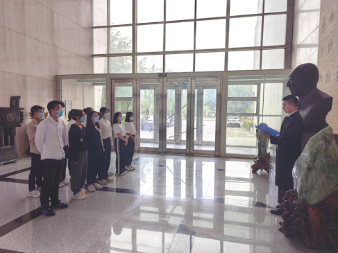 2022级的数名新同学们在主持人李慧婷同学的带领下来到高清海先生的雕像处集合。