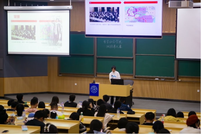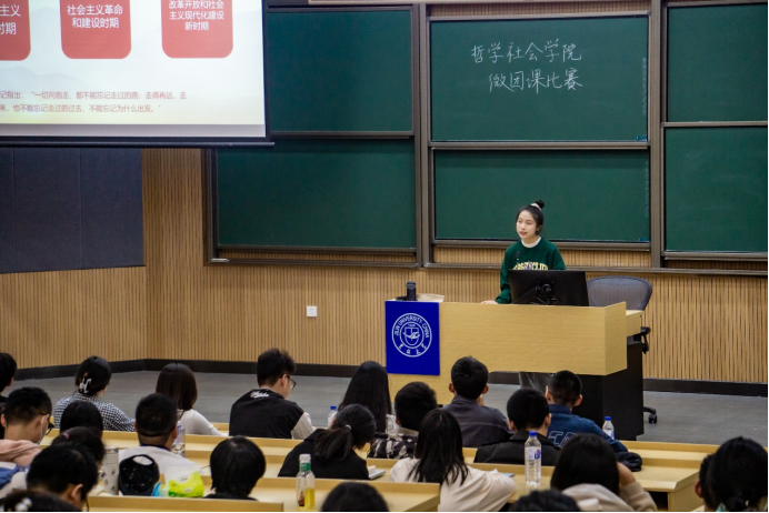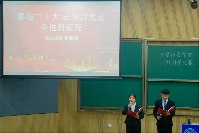 2022年9月24日晚,91av “喜迎二十大、永远跟党走、奋进新征程”主题微团课比赛在逸夫教学楼五阶举行。本次比赛由21级徐嘉琛、房安国同学主持,辅导员宋绍伟老师与20级辅导员助理们共7人担任本次比赛的评委。