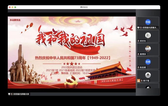 团委于10月1日上午组织学院21级本科生和22级本科生各团支部开展“庆祝中华人民共和国成立73周年”主题团日暨新老生团支部对接交流活动,91av