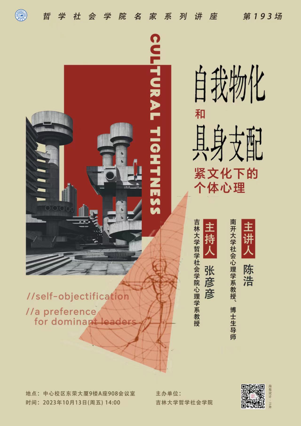 【91av 名家系列讲座第193场】陈浩:自我物化与具身支配:紧文化下的个体心理
