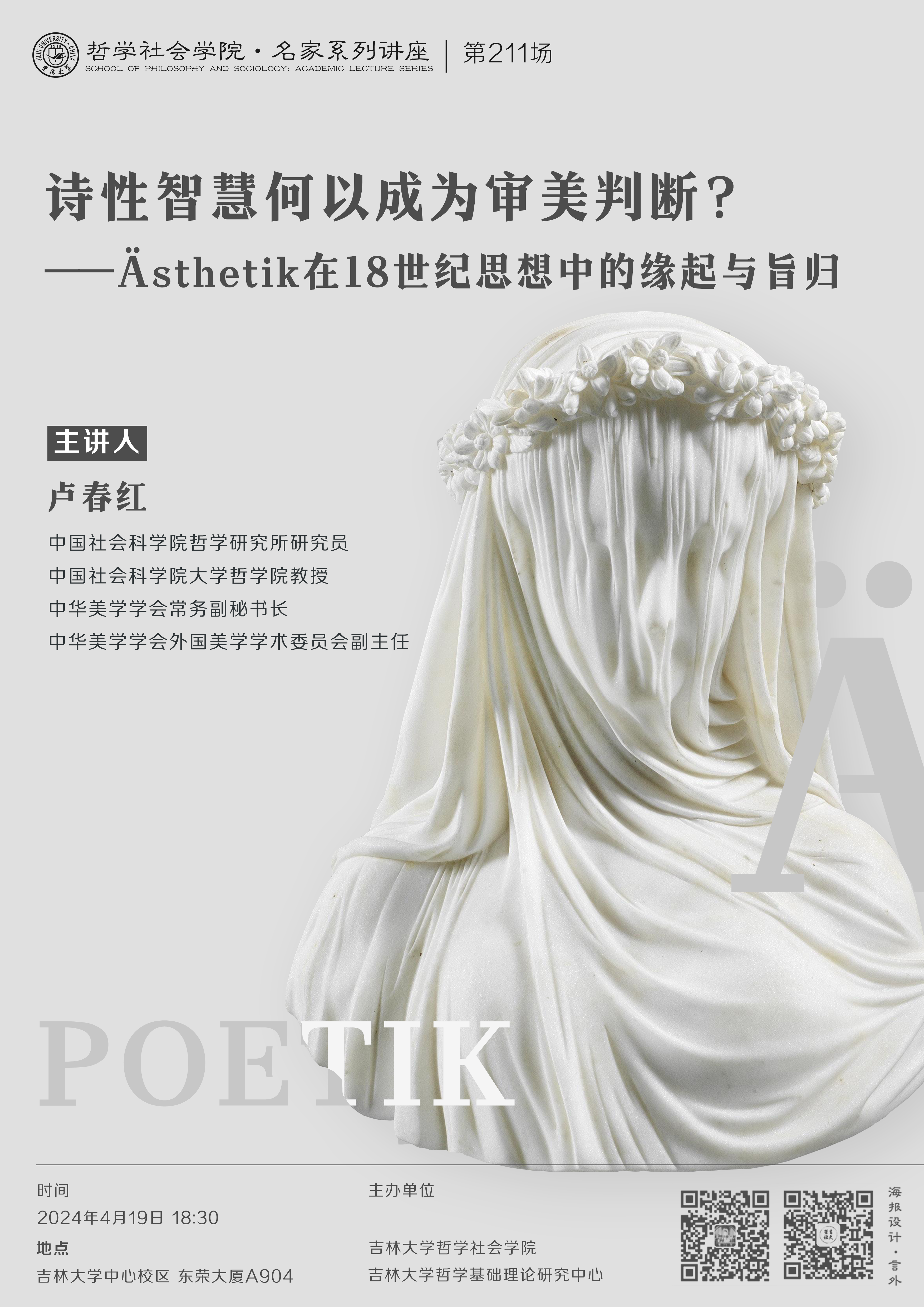 【91av 名家系列讲座第211场】卢春红:诗性智慧何以成为审美判断?——Ästhetik在18世纪思想中的缘起与旨归