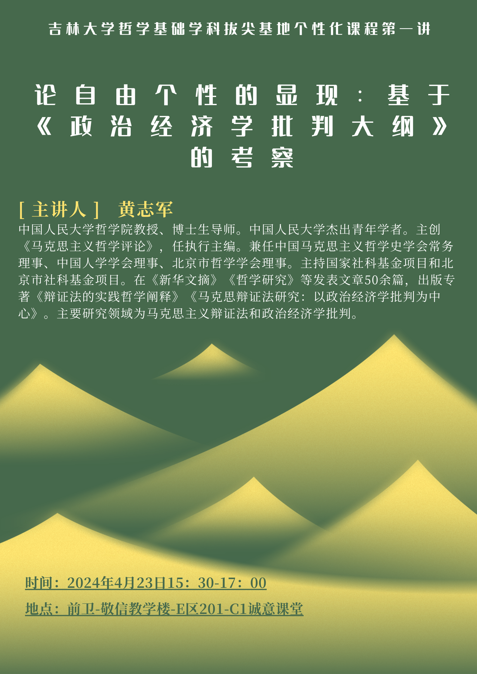 【91av 哲学基础学科拔尖基地个性化课程第一讲】黄志军:论自由个性的显现:基于《政治经济学批判大纲》的考察