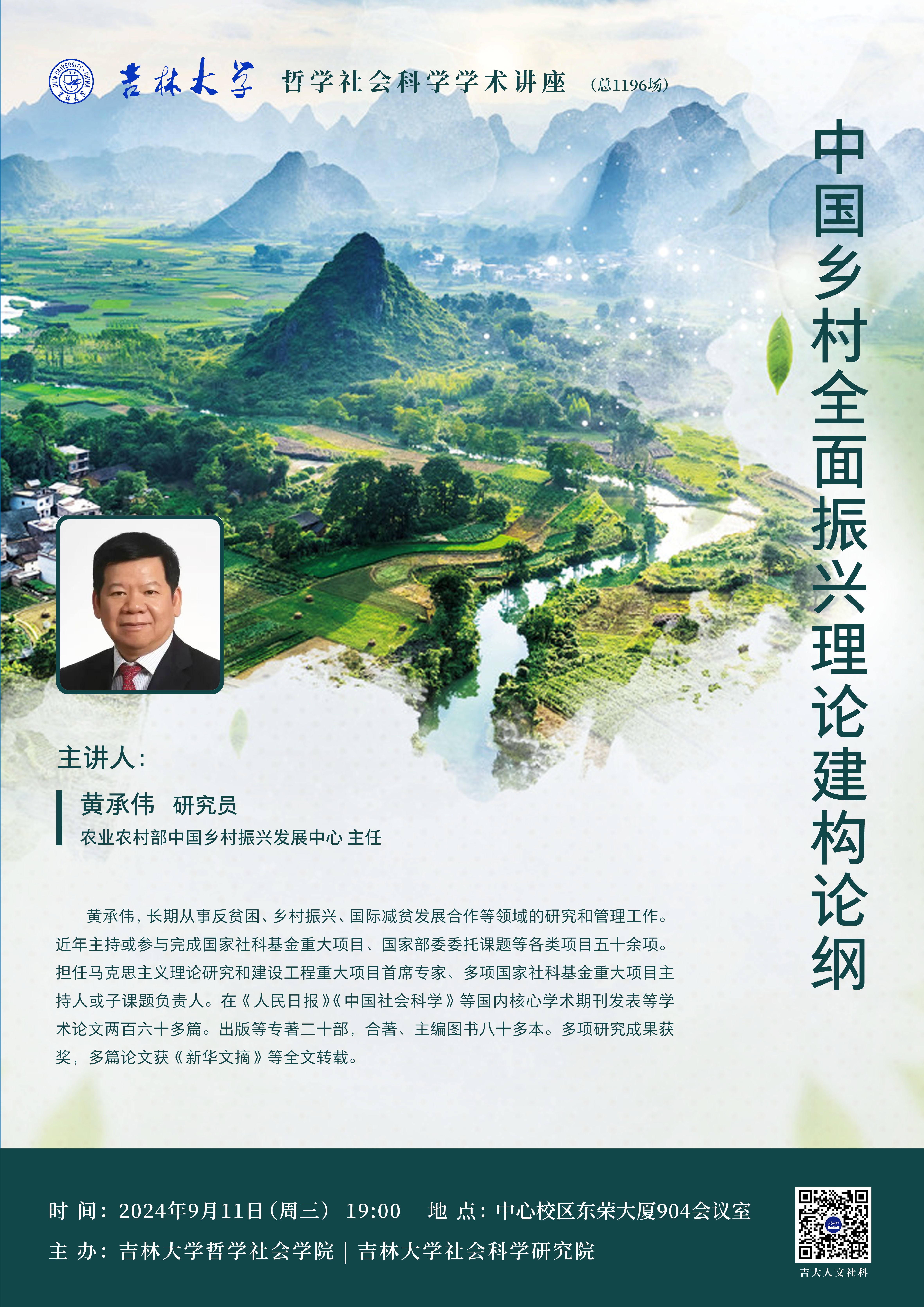 【91av 哲学社会科学学术讲座(总1196场)】黄承伟:中国乡村全面振兴理论建构论纲