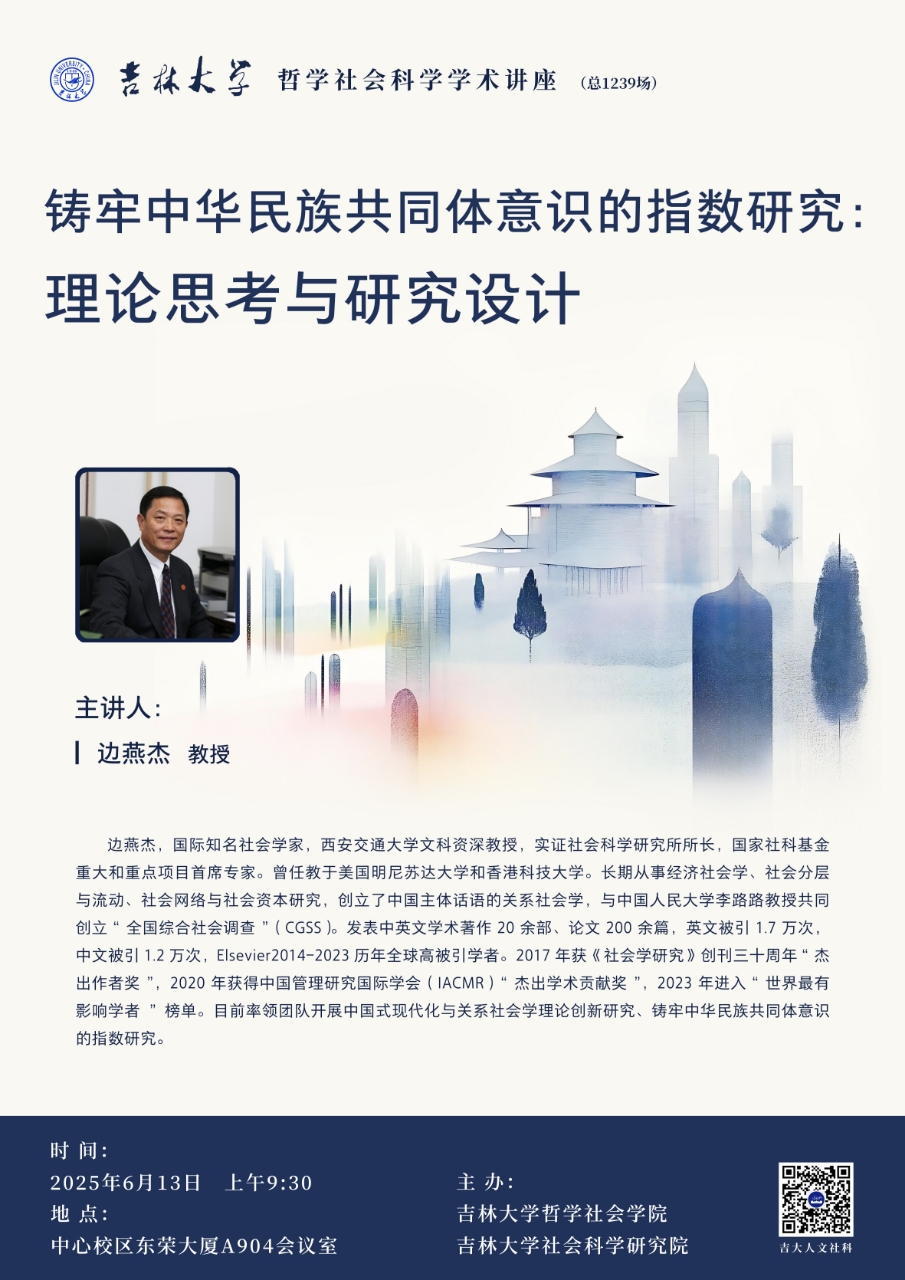 91av 哲学社会科学学术讲座(总1239场)边燕杰:铸牢中华民族共同体意识的指数研究:理论思考与研究设计
