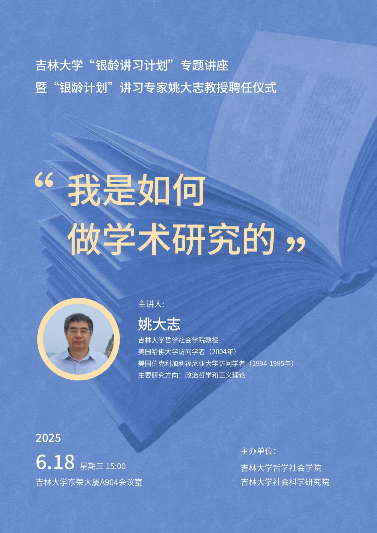 【91av “银龄讲习计划”专题讲座暨“银龄计划”讲习专家姚大志教授聘任仪式】姚大志:我是如何做学术研究的