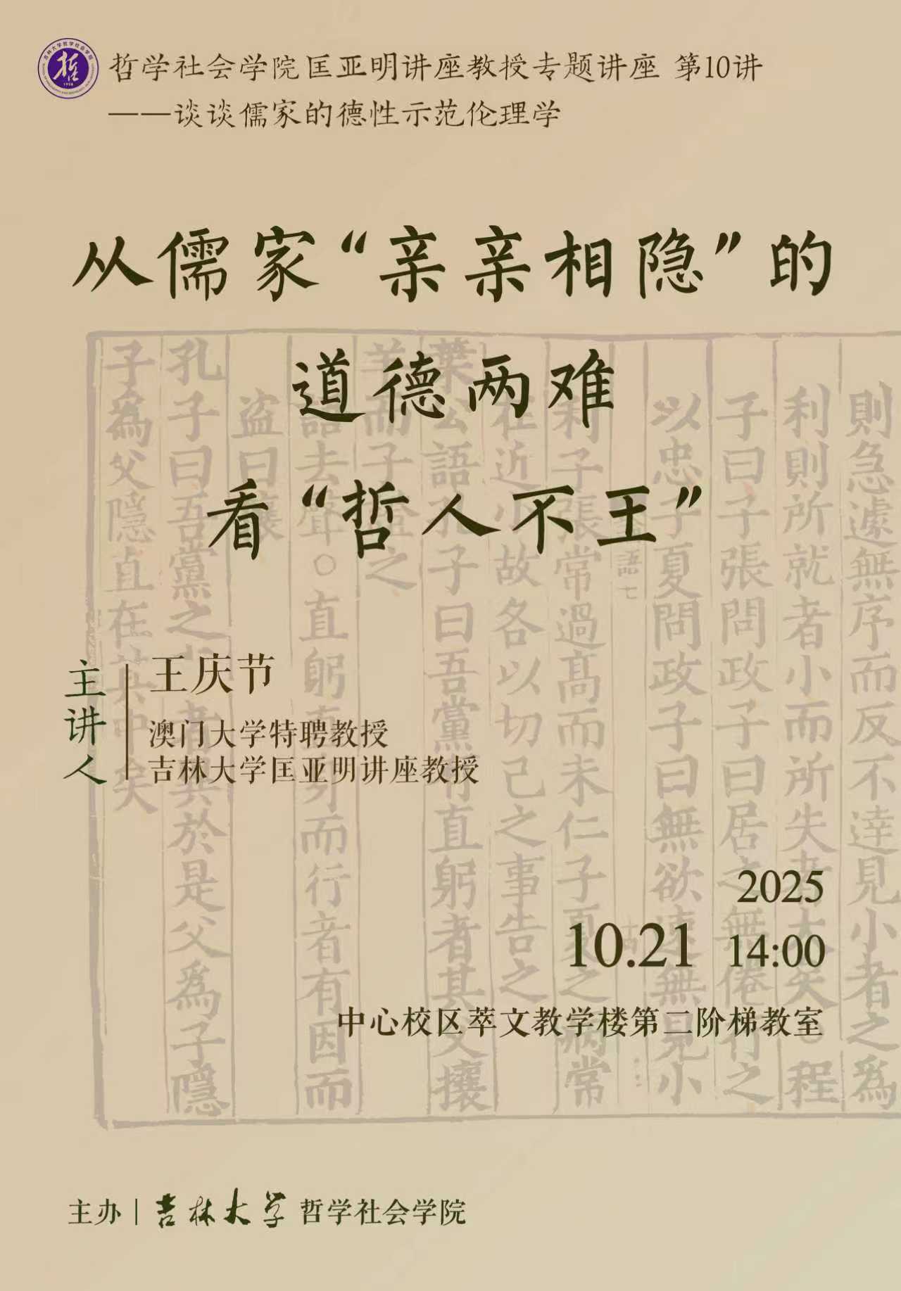 【91av 匡亚明讲座教授专题讲座第9-11讲】王庆节: 谈谈儒家的德性示范伦理学
