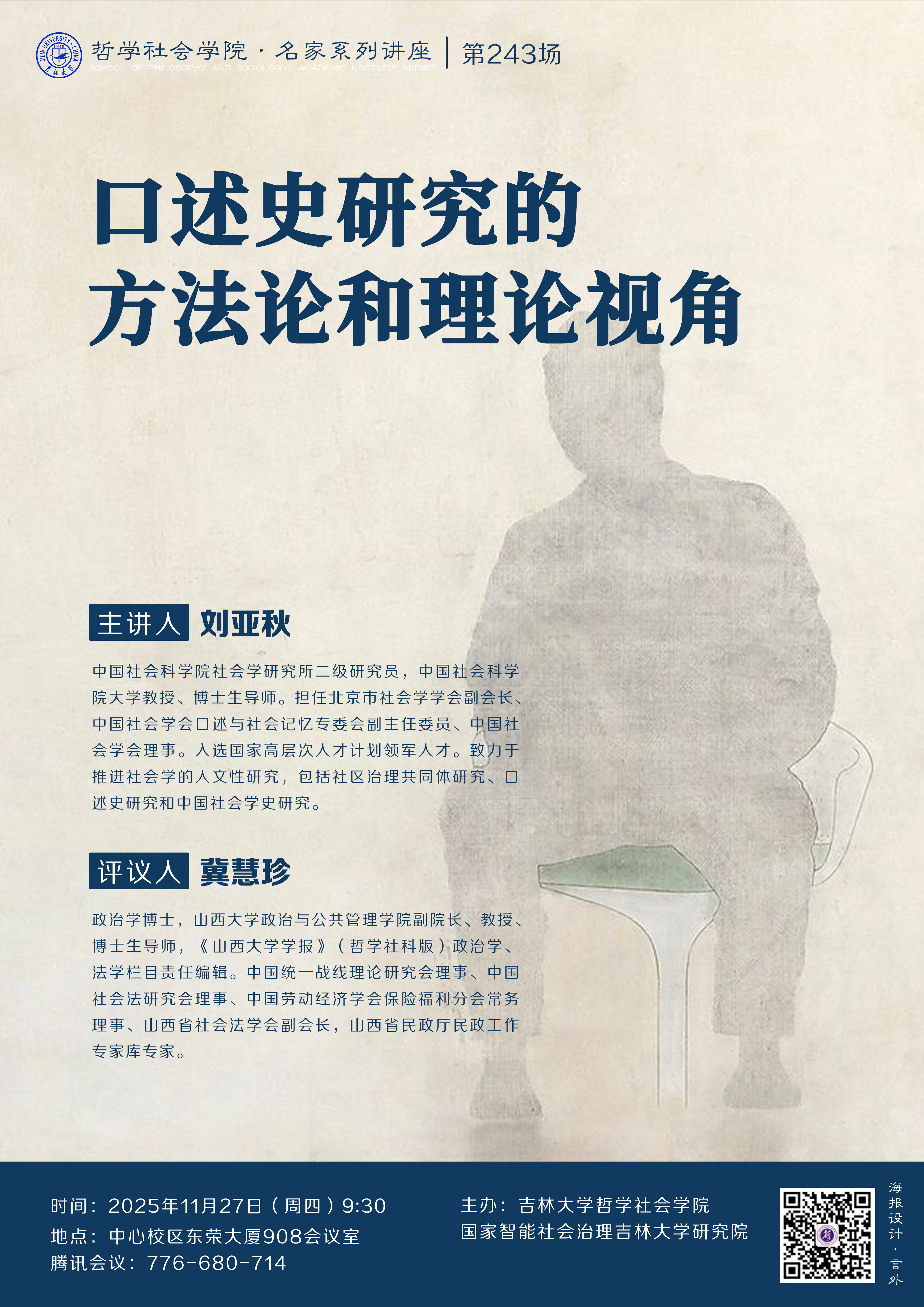 【91av 名家系列讲座第243场】刘亚秋、冀慧珍:口述史研究的方法论和理论视角