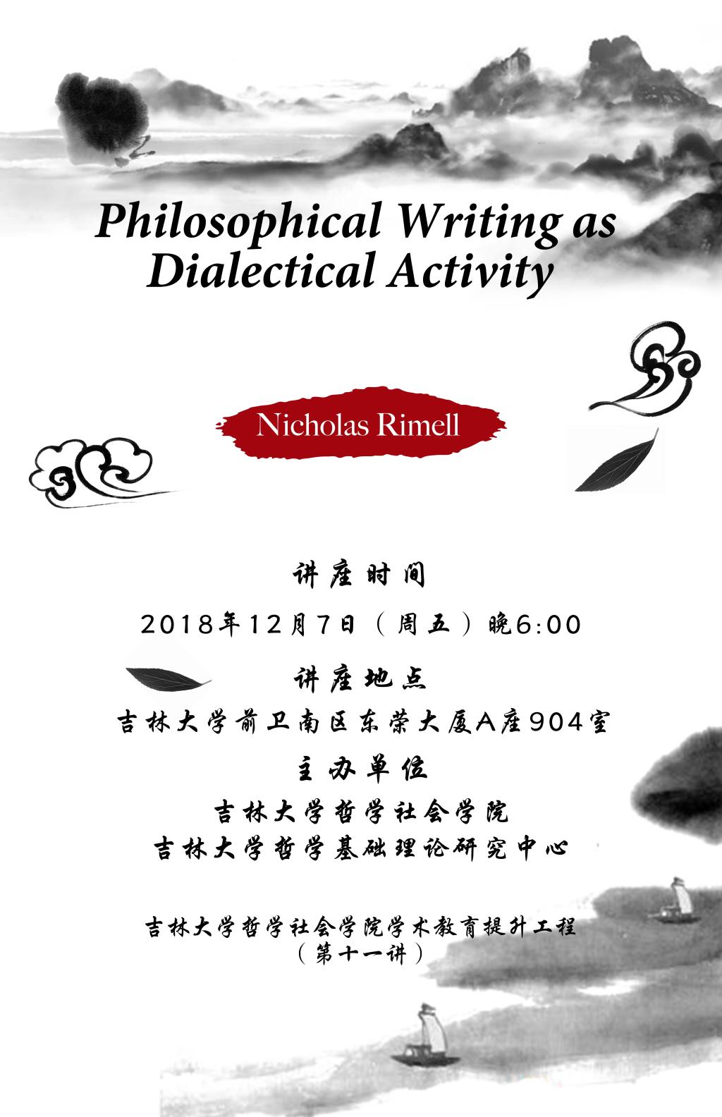 【91av 学术教育提升工程(第十一讲)】Nicholas Rimell:Philosophical Writing as Dialectical Activity