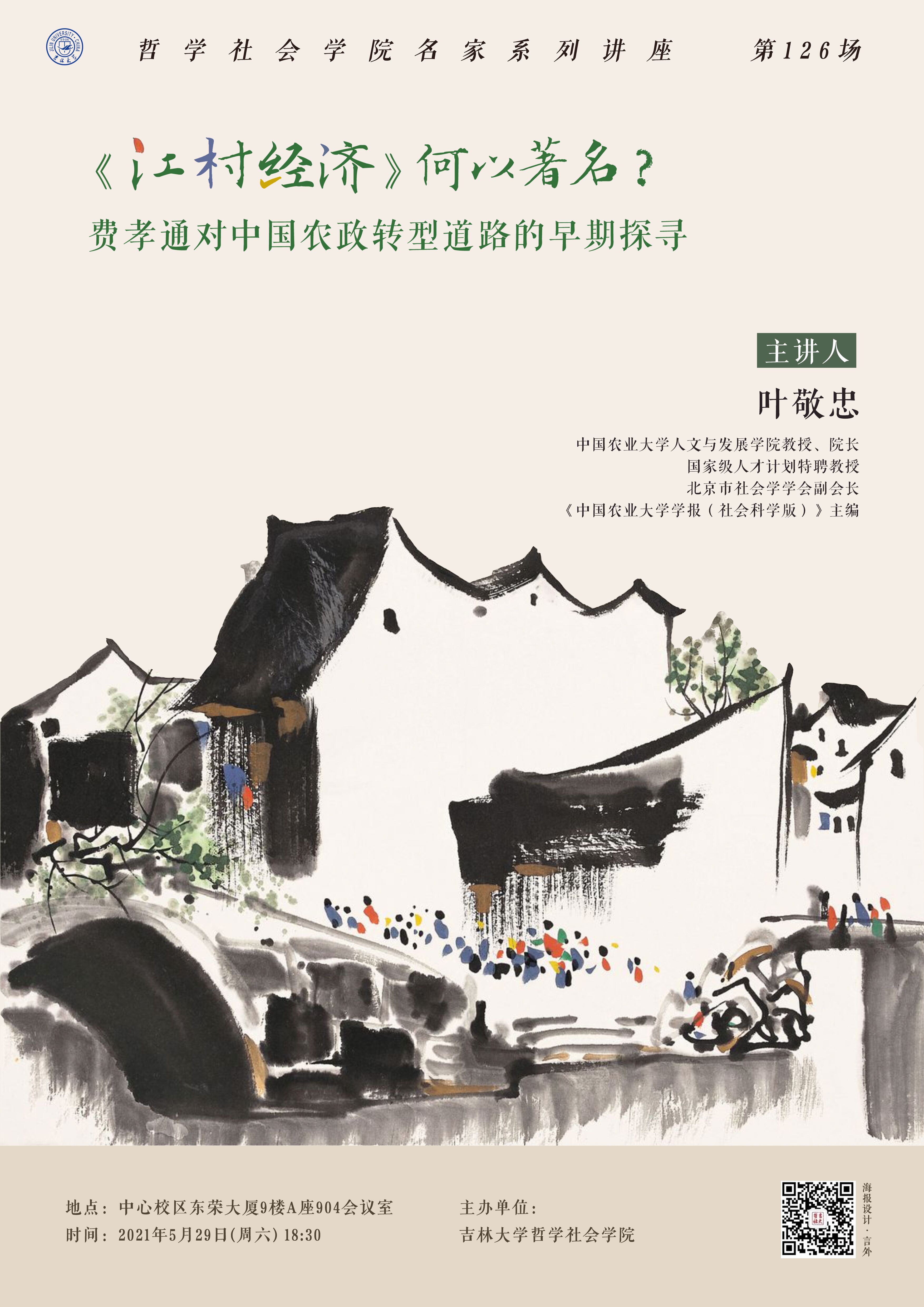 【91av 名家系列讲座第126讲】叶敬忠:《江村经济》何以著名?——费孝通对中国农政转型道路的早期探寻