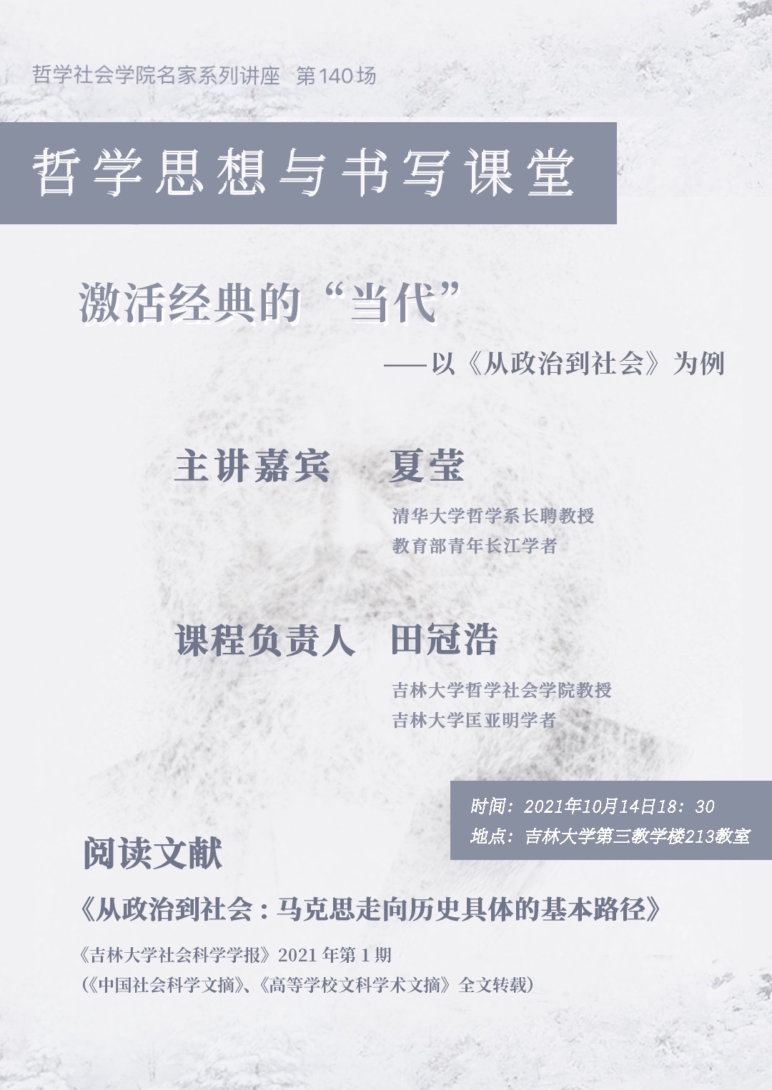 【91av 名家系列讲座第140场】【哲学思想与书写讲堂】夏莹:激活经典的“当代”——以《从政治到社会》为例