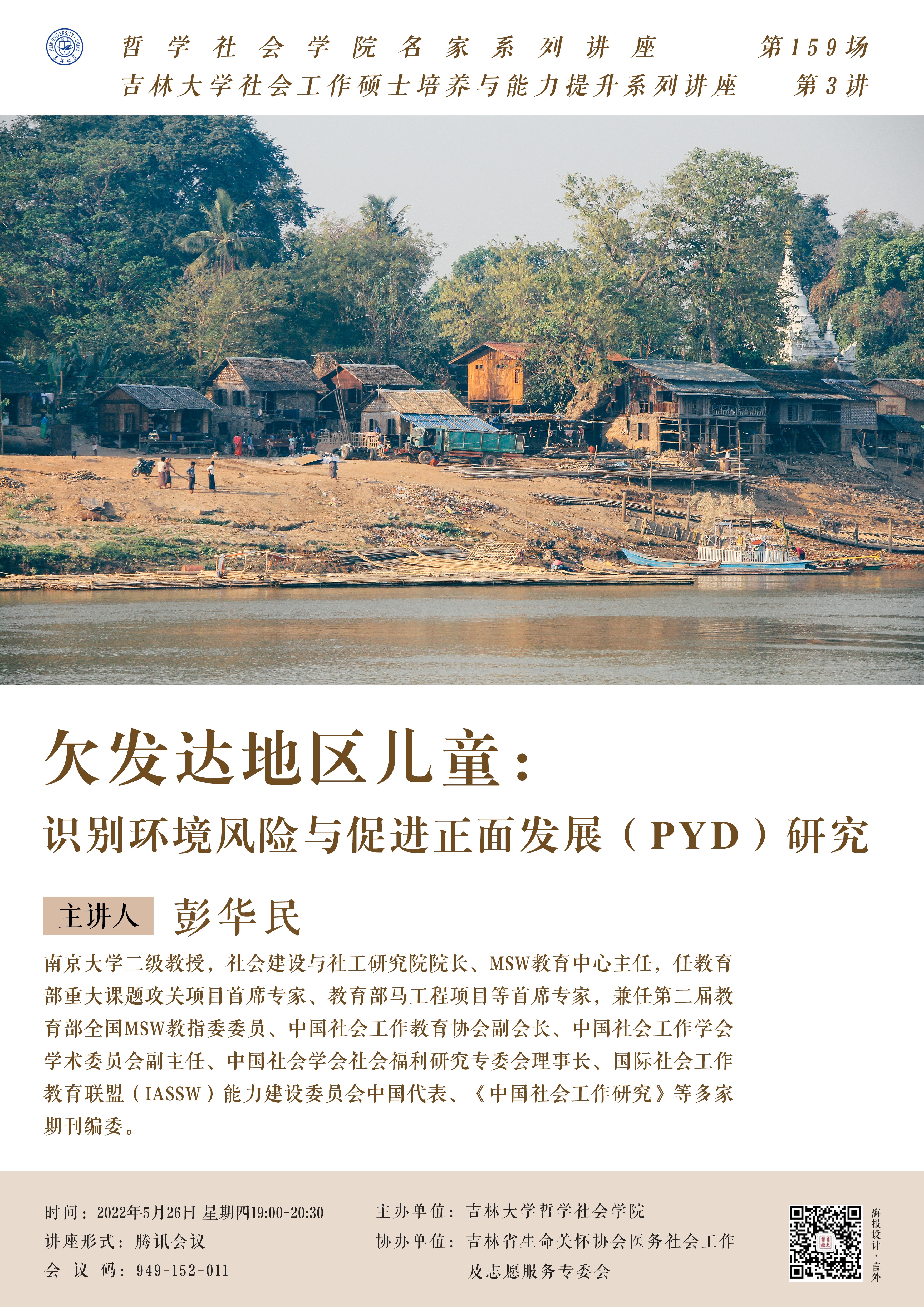 【91av 名家系列讲座第159场】【91av 社会工作硕士培养与能力提升系列讲座第3讲】彭华民:欠发达地区儿童:识别环境风险与促进正面发展(PYD)研究