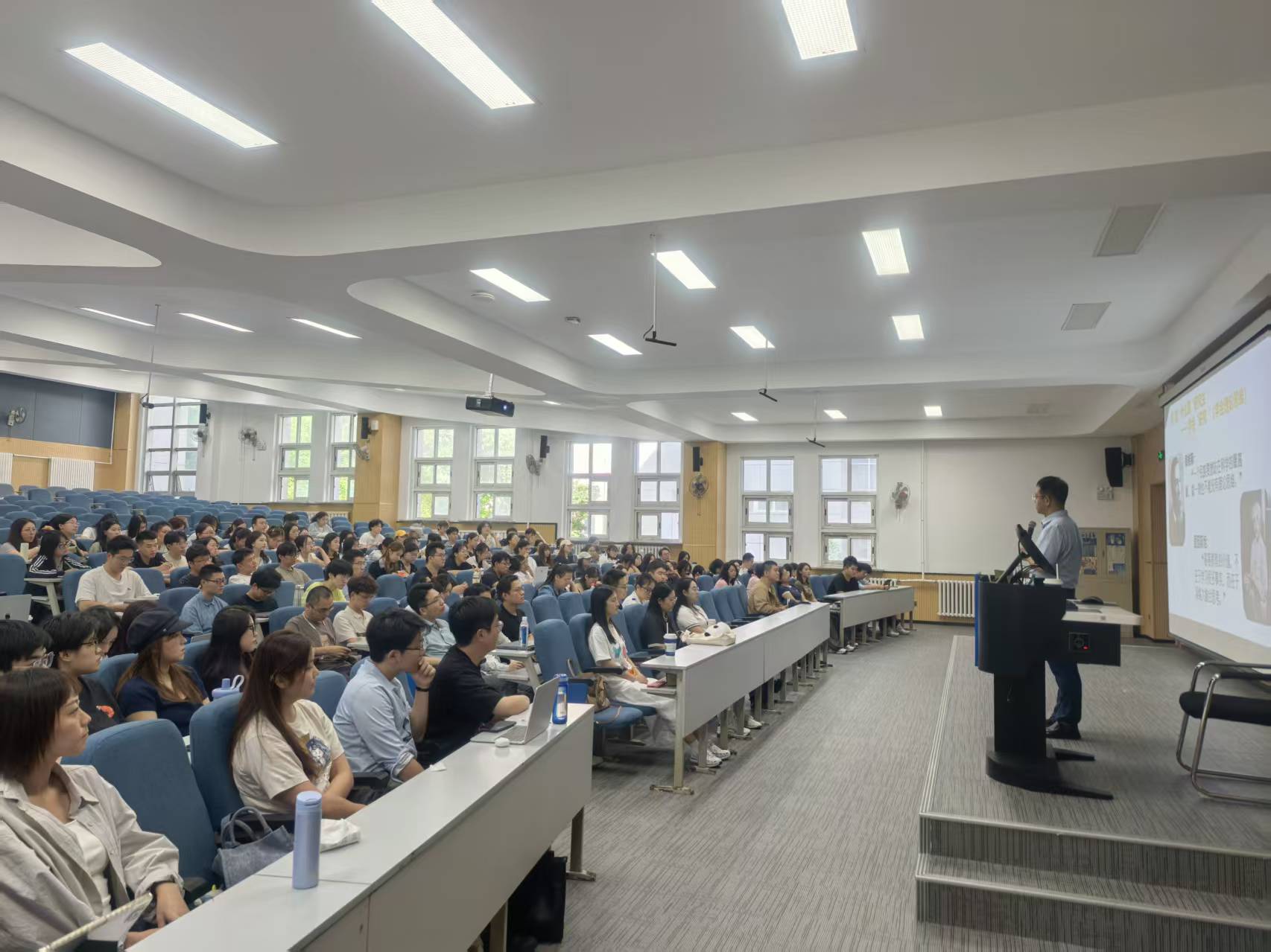在中心校区三教一阶举办“新生开学第一课”。本次活动由院长白刚教授主讲,研究生辅导员于洋老师主持,2025级全体博士、硕士新生参加。