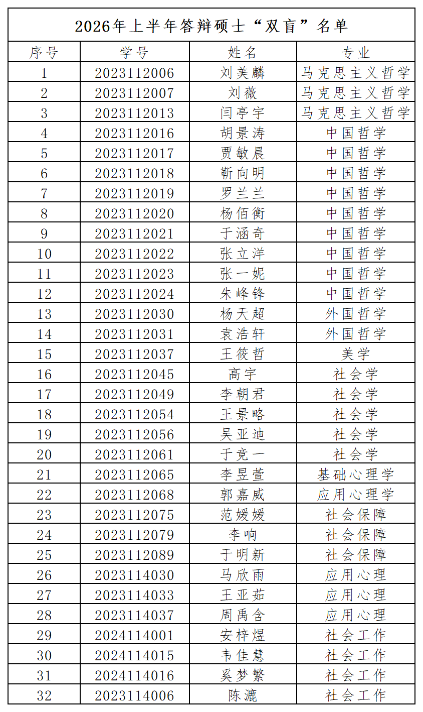 2026年上半年答辩硕士“双盲”名单