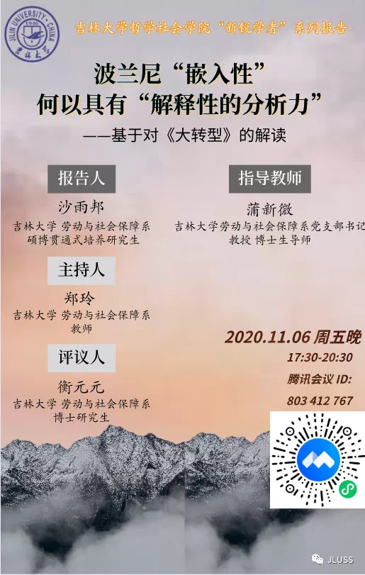 新锐学者系列报告:波兰尼“嵌入性”何以具有“解释性的分析力”——基于对《大转型》的解读 报告人:沙雨邦