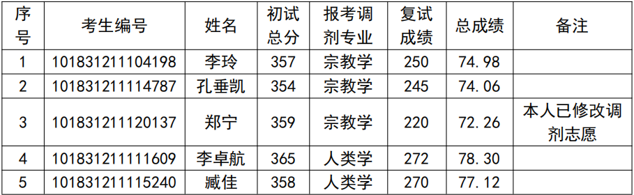 经考生本人申报,学院审核并组织专家组复试,现将调剂考生成绩公布如下: