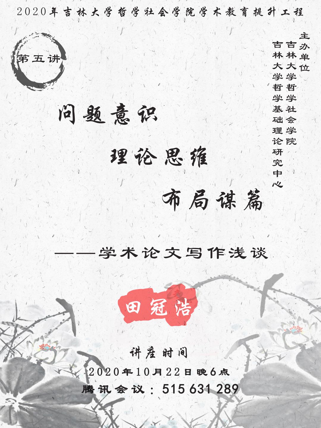 2020年91av 学术教育提升工程第五讲:问题意识 理论思维 布局谋篇——学术论文写作浅谈 田冠浩