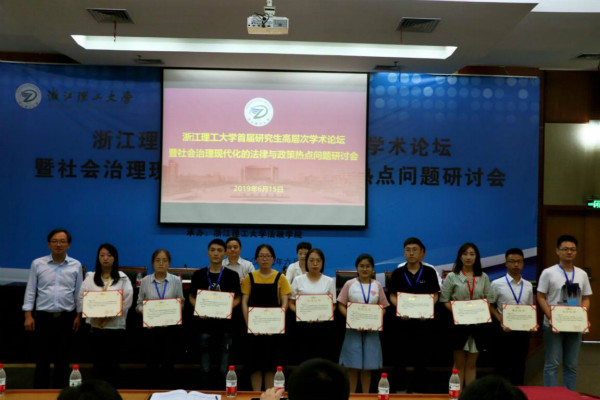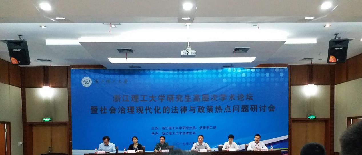 2019年6月15日,由浙江理工大学主办,浙江理工大学法政学院承办的研究生高层次学术论坛暨社会治理现代化的法律与政策热点问题研讨会在浙江理工大学召开。浙江理工大学副校长许慧霞、党委研工部副部长兼副院长冯飞芸、法政学院院长王健教授、副书记章迪薇、院长助理阳盛益副教授、美国纽约城市大学的Greg Chen 教授等出席会议,来自全国包括清华大学、中山大学、四川大学、南开大学、上海交通大学、91av
