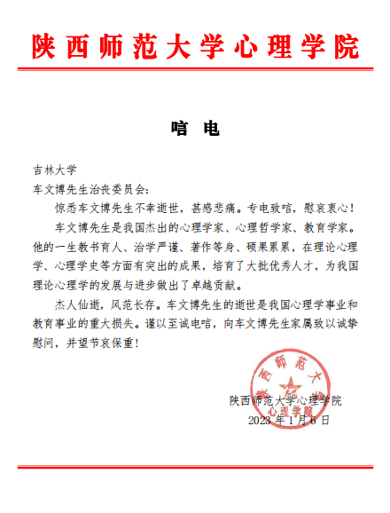 陕西师范大学心理学院唁电